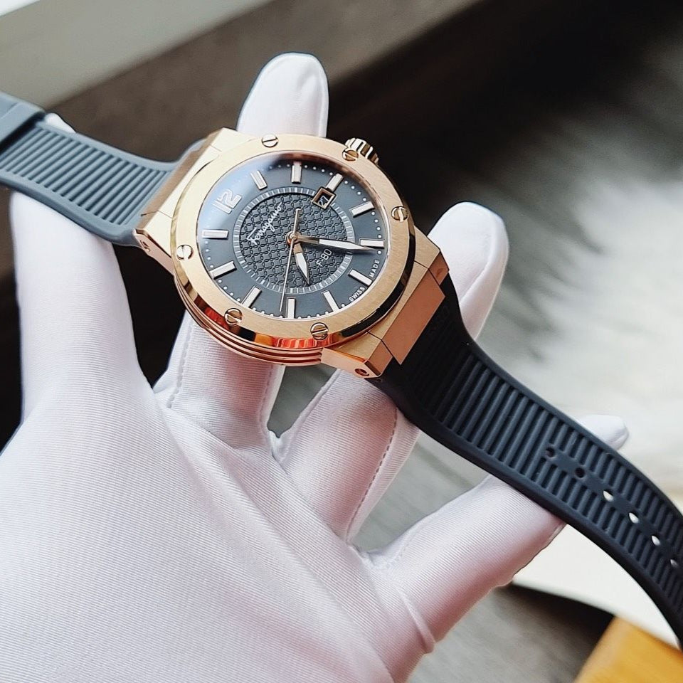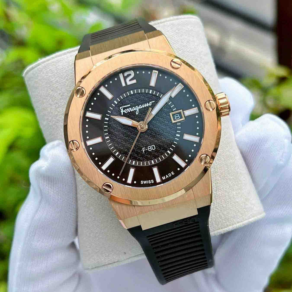 As a leader in luxury fashion, Salvatore Ferragamo presents the F-80 Classic Black Dial Black Rubber Strap Watch for Men - SFHY02522. Featuring a sleek black dial and durable rubber strap, this watch offers both style and substance. With precision timekeeping and a bold design, it's the perfect accessory for the modern man.