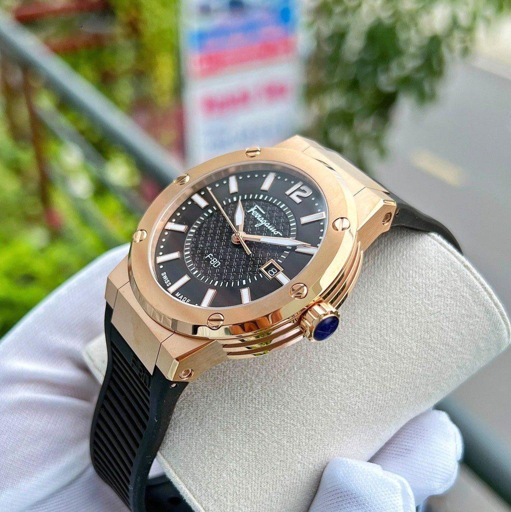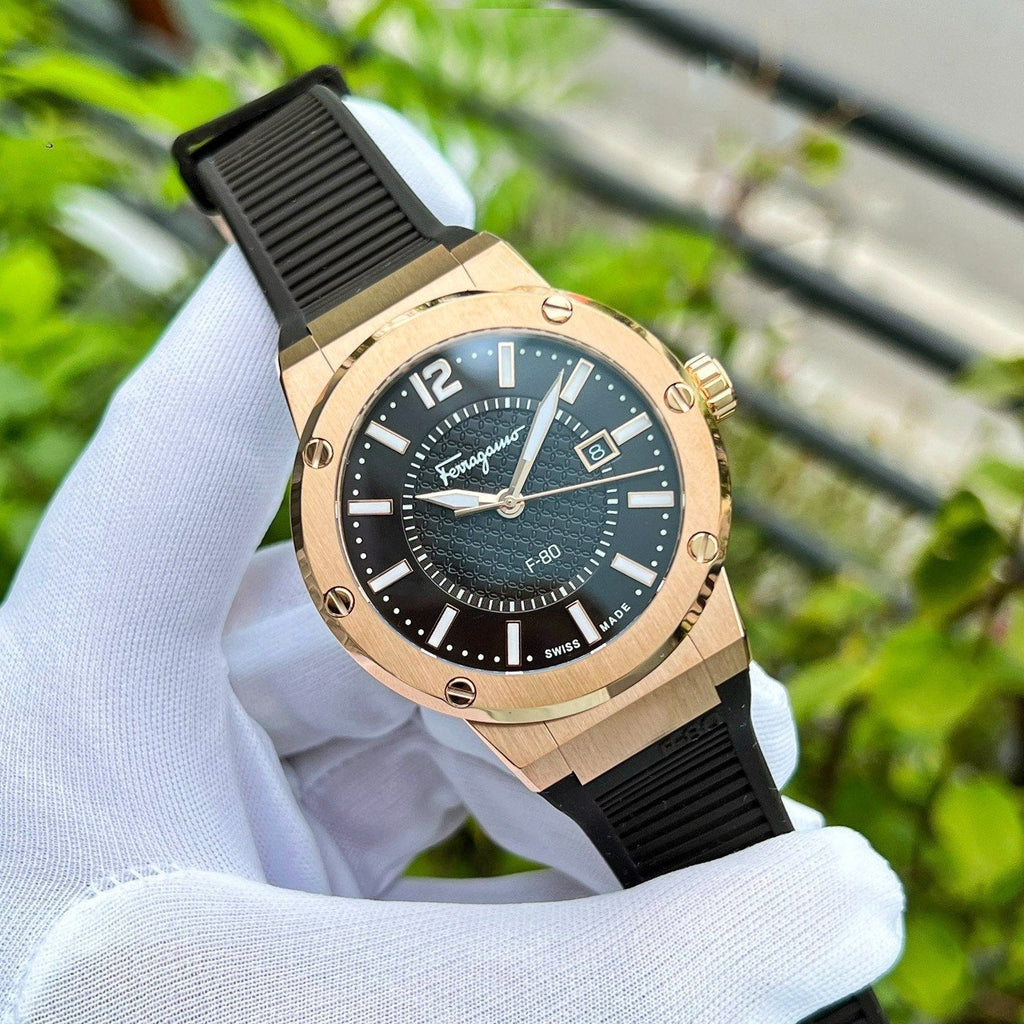 Salvatore Ferragamo F-80 Classic Black Dial Black Rubber Strap Watch for Men - SFHY02522