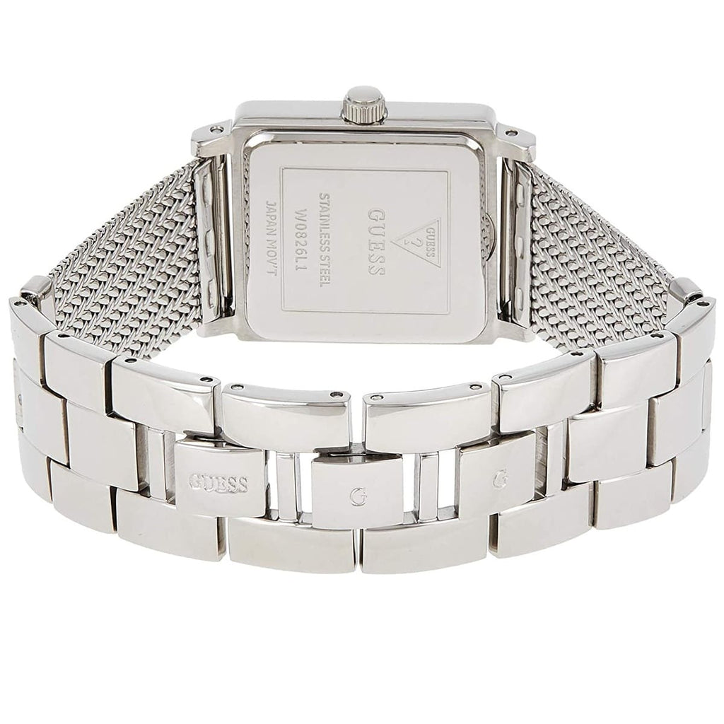 Guess Classic W0826L1 is a fashionable watch that will be the perfect addition to your everyday look. It is driven by a reliable and widely used quartz movement powered by a battery. The solid silver case is made of stainless steel.The mesh bracelet is made of high-quality stainless steel. Due to the comfortable clasp, the bracelet is easy to put on. A mineral crystal provides a great protection against shocks and scratches and perfectly goes with the silver case. A water resistance of 50 meters means the watch can withstand splashes and is suitable for showering and bathing. Guess W0826L1 is covered by the manufacturer's warranty and is packed in the original box.