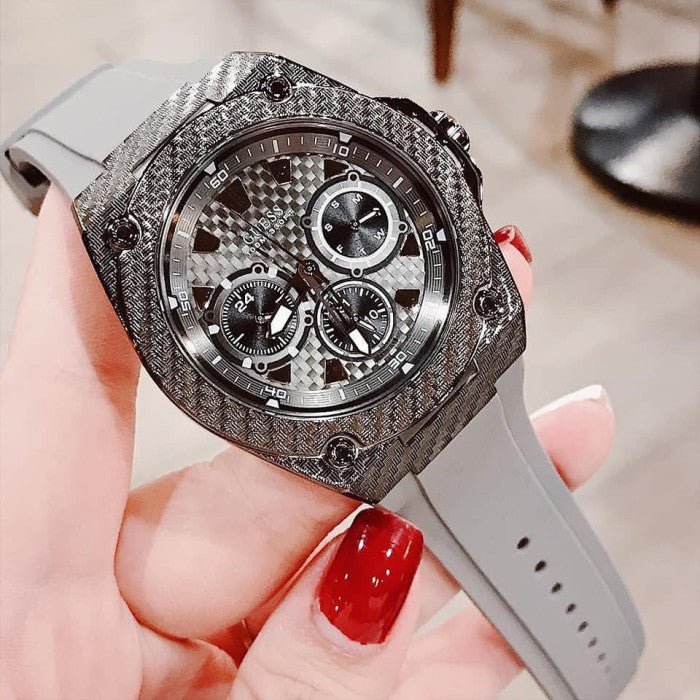 Guess Legacy Grey Dial Grey Silicone Strap Watch For Men - W1048G1
