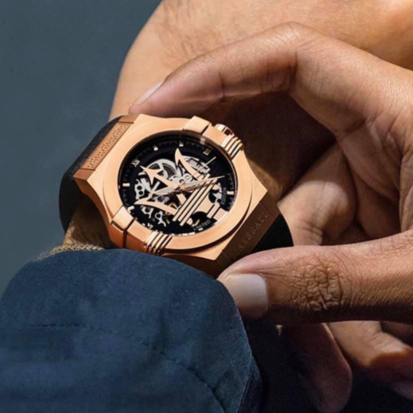 Maserati Potenza Limited Edition Automatic Skeleton Black Dial Black Leather Strap Watch For Men - R8821108025
