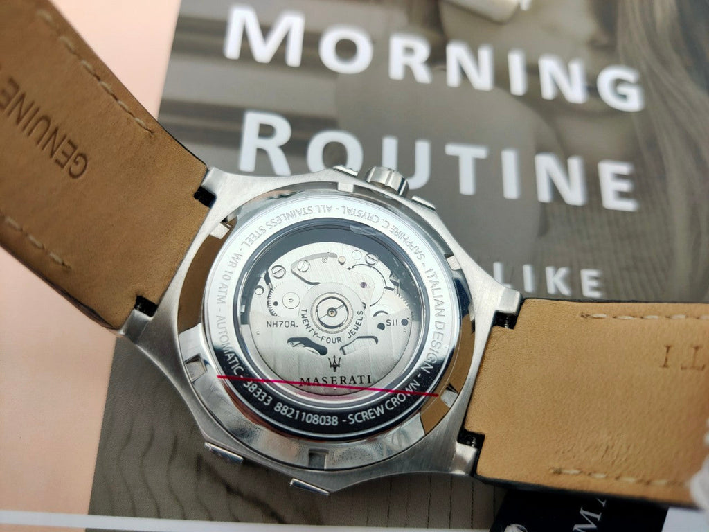 Maserati Potenza Automatic Black Dial Black Leather Strap Watch For Men - R8821108038