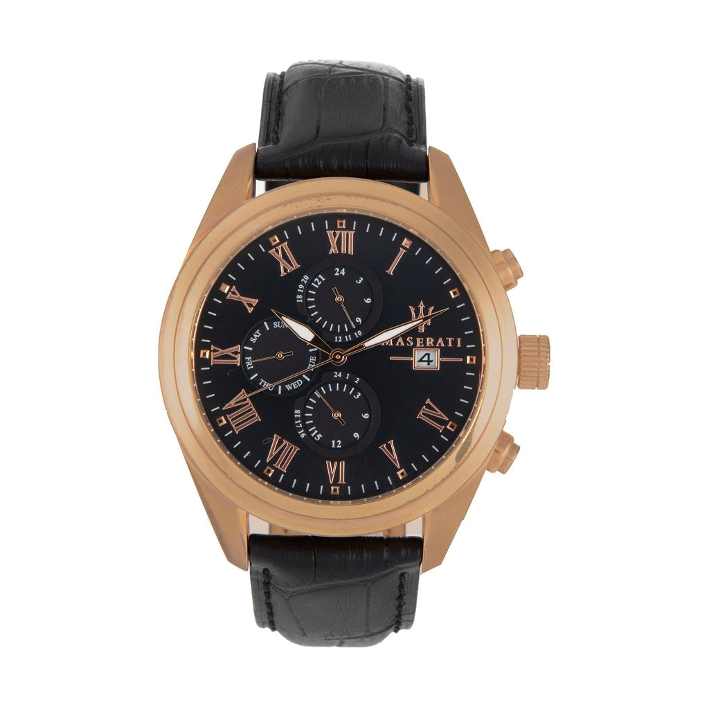 Maserati Traguardo Chronograph Black Dial Black Leather Strap Watch For Men - R8871612002