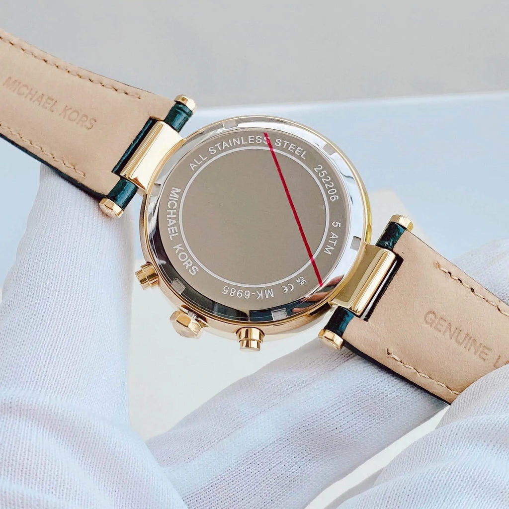 Michael Kors Parker Chronograph Green Dial Green Leather Strap Watch For Women - MK6985