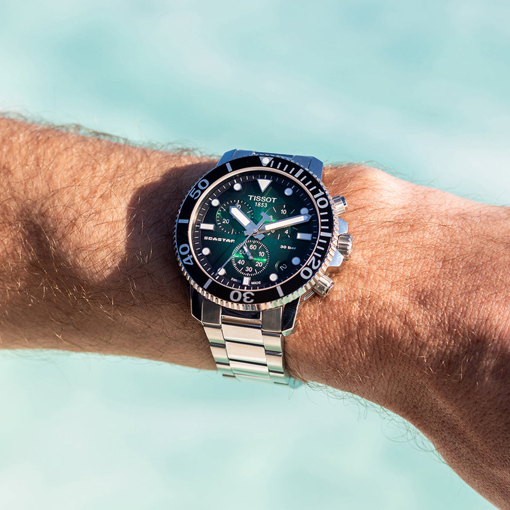 Tissot Seastar 1000 Chronograph Green Dial Silver Steel Strap Watch For Men - T120.417.11.091.01