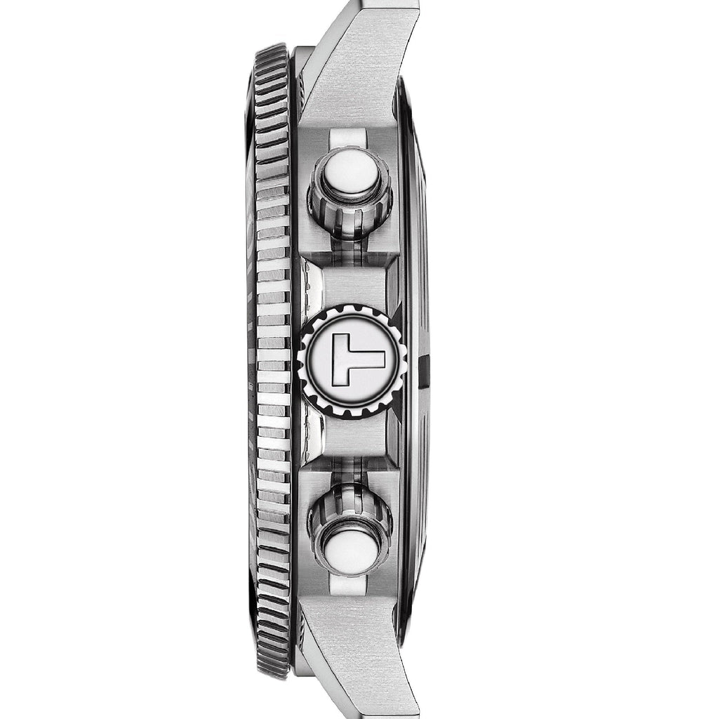 This collection has been created for real water sports lovers. The Tissot Seastar 1000 is the ultimate watersport watch, with its high water-resistance up to a pressure of 30 bar (300 m/1000 ft), screw-down crown and caseback as well as its unidirectional ceramic bezel.