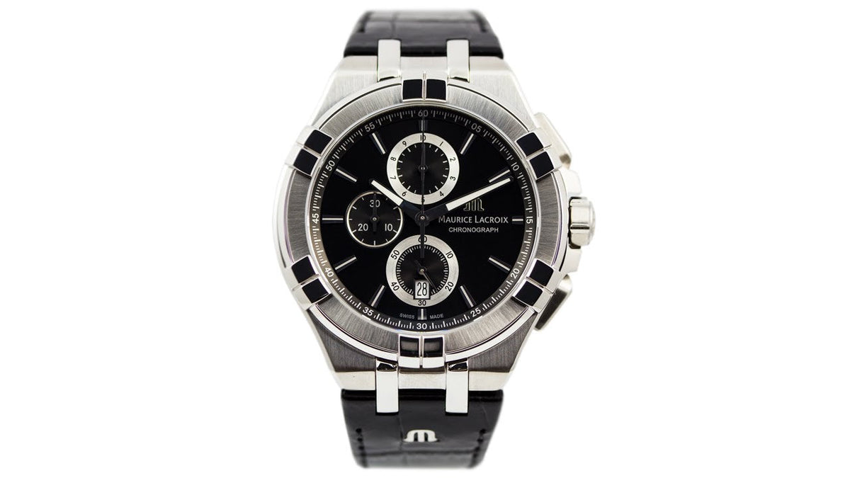 Maurice Lacroix Aikon Chronograph Black Dial Black Leather Strap Watch for Men - AI1018-SS001-330-1
