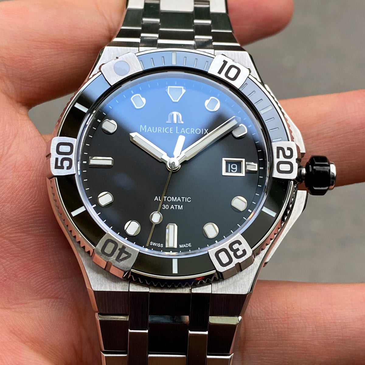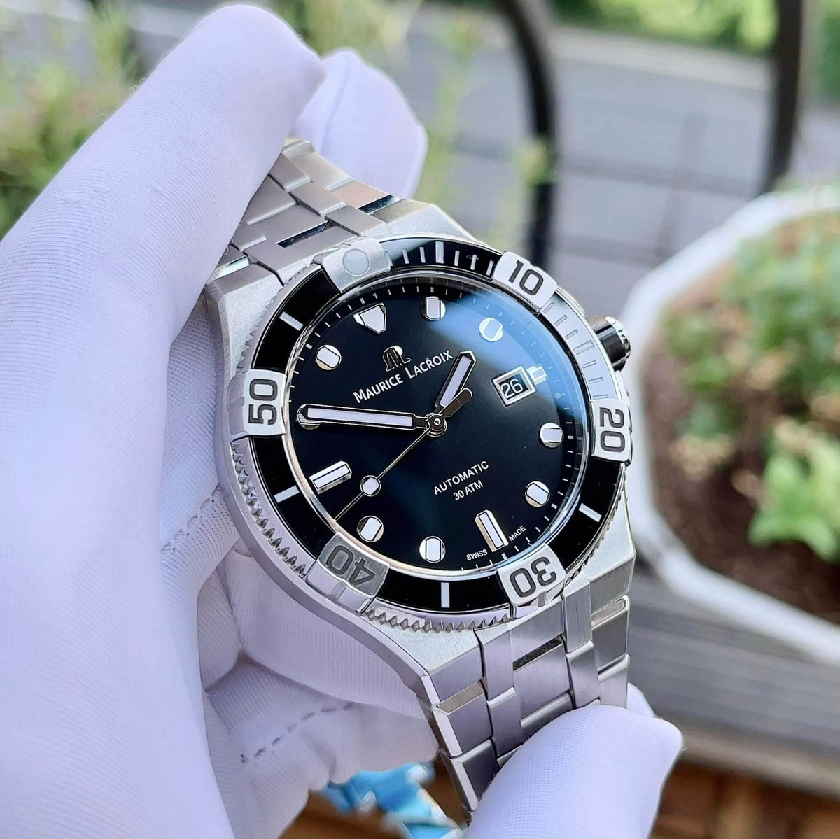 Maurice Lacroix Aikon Venturer Black Dial Silver Steel Strap Watch for Men - AI6058-SS002-330-1