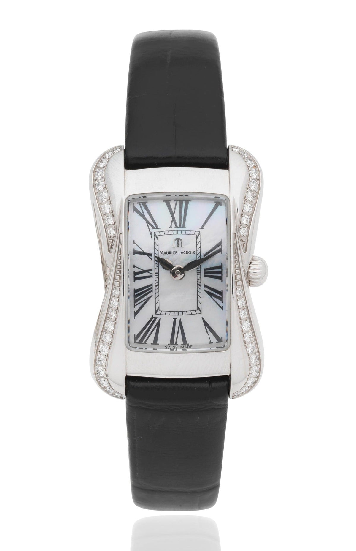 Maurice Lacroix Divina White Mother of Pearl Dial Black Leather Strap Watch for for Women - DV5011-SD531-120