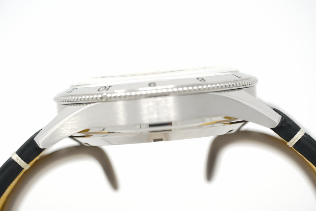 The 41mm stainless steel case is also identical, and the bezel is secured by three screws that are placed in precisely the same positions as those on the watch from 1953. There are only two concessions to modernity that distinguish this new timepiece from its famous ancestor: the water resistance has been improved up to 3 bar (30 meters) and keen-eyed observers will see that “GENEVE” does not appear on the dial anymore. The AVI Ref. 765 1953 Re-Edition is powered by the in-house Breitling Manufacture Caliber B09, a hand-wound COSC-certified caliber based on the renowned Breitling Caliber 01 and developed specifically for historical re-editions. It is available on a black vintage-inspired leather strap with a pin buckle as a limited-edition of 1953 pieces, each of which is engraved “ONE OF 1953”.