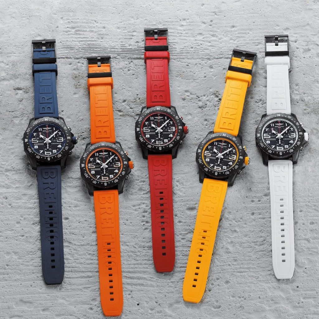 The Endurance Pro features an ultra-light Breitlight® case, a robust material 3.3 times lighter than titanium and 5.8 times lighter than stainless steel. Non-magnetic, thermally stable and hypoallergenic, Breitlight® is highly resistant to scratches, traction and corrosion. It also has a touch that is warmer than metal and a slightly textured effect accentuating the originality of the design. Exclusive to Breitling, it is 100% Swiss-made. Offered with a set of colorful dial and rubber straps fitting a Breitlight® double tang-type buckle, the Endurance Pro can also be paired with one of Breitling’s colorful Outerknown ECONYL® yarn single-piece strap. Powering the Endurance Pro is Breitling’s Caliber 82, a COSC-certified SuperQuartz™ chronograph delivering exceptional precision.