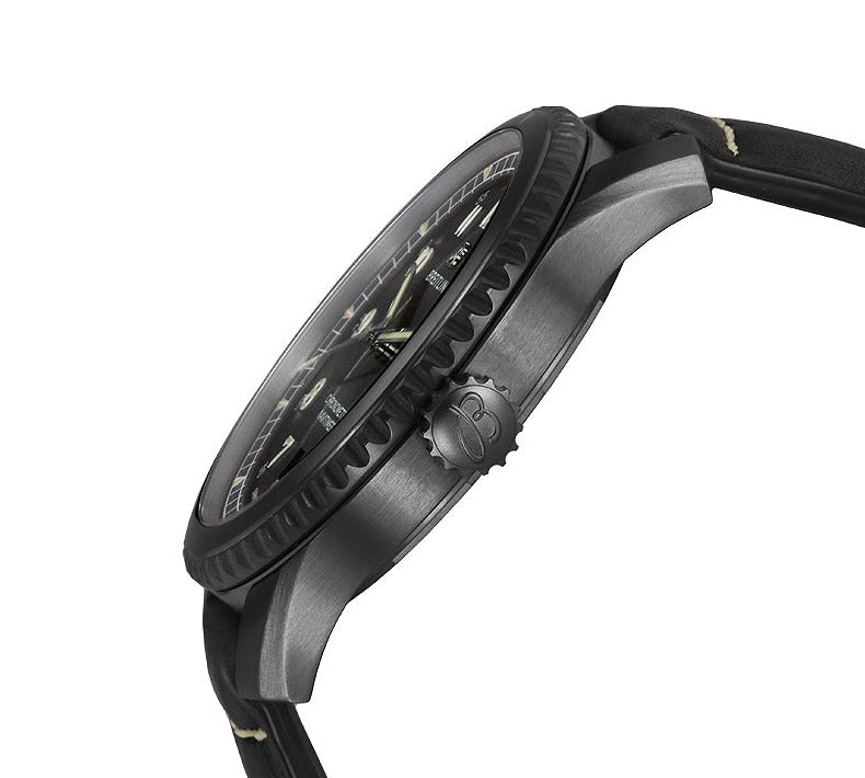 The central hand serves for seconds tracking. The date window is placed at the 6 o’clock. The mechanical self-winding B17 movement features 25 jewels and a 40-hour power reserve. The strap is made of black calfskin leather and fitted with a deployant buckle. It is water resistant up to 100m. Watch comes in original packaging, with a set of documents and 2 years warranty.