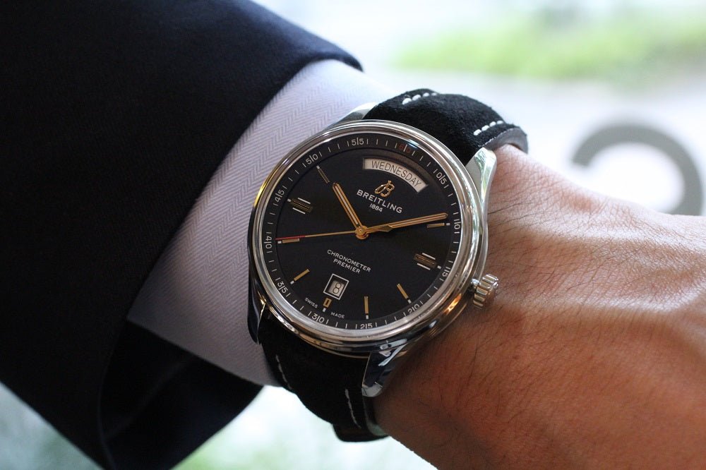 Breitling Premier Automatic 40mm Day & Date Black Dial Black Leather Strap Mens Watch - A45340241B1P2
