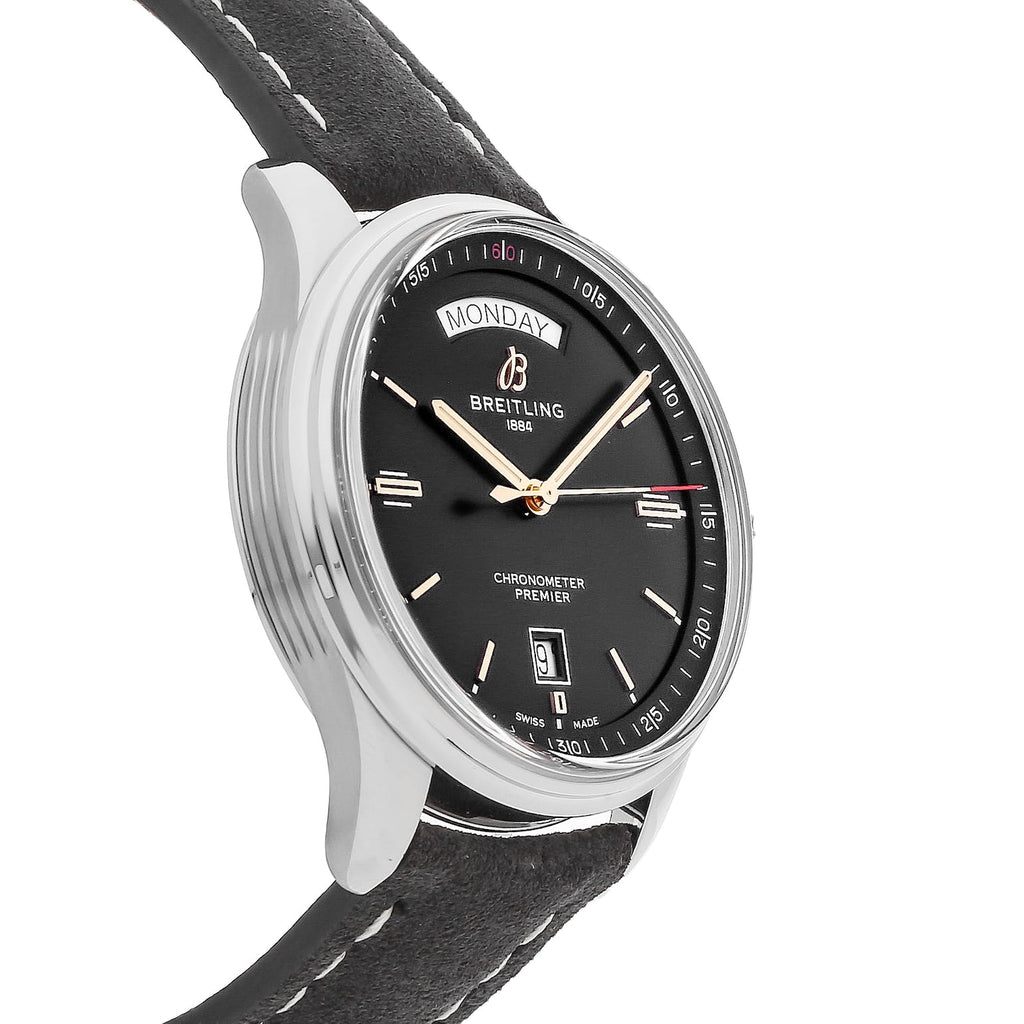 Breitling Premier Automatic 40mm Day & Date Black Dial Black Strap Mens Watch - A45340241B1X1