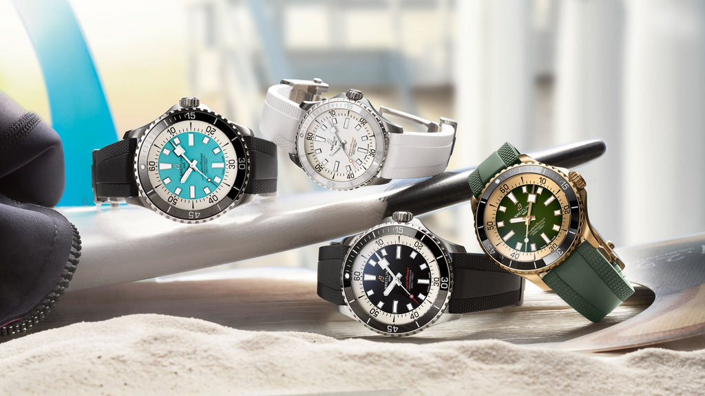Performance and style for all your water-based pursuits. In the 1960s, the new sport of scuba diving was all the rage. For divers, timing was everything, and Breitling set out to give them the most clear-cut dive watch possible by eliminating any feature that didn’t support their lifesaving needs underwater. This pared-down watch was named the Slow Motion. What remained were clean lines, chunky luminescent indexes, squared-off hands and a high-contrast dial ring, all aimed at maximum legibility. Practical, yes. But what people really fell in love with was the look.