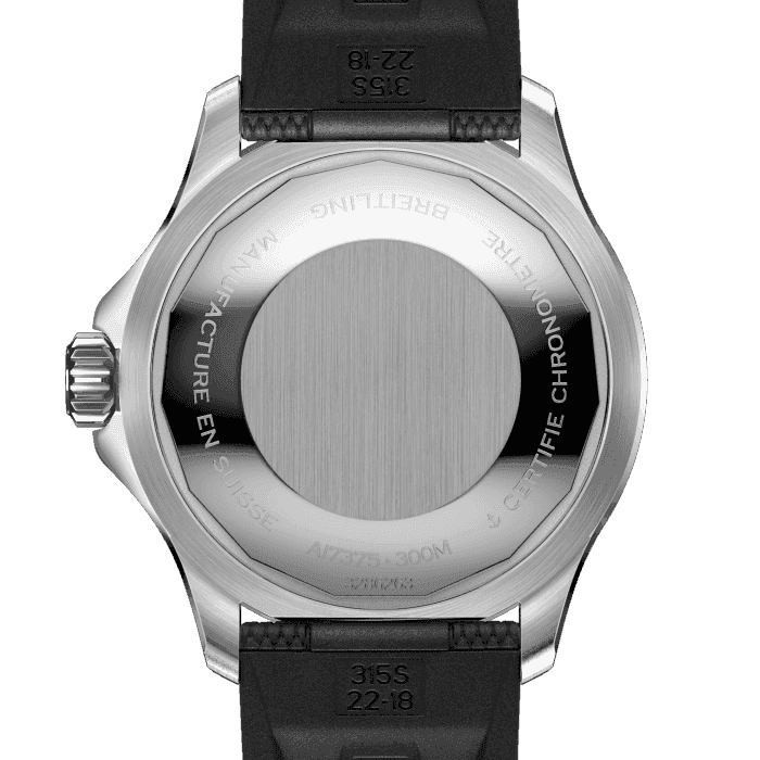 • Breitling calibre 17, COSC Certified, 28,000 vph (4Hz), 26 jewels, approximate power reserve of 38 hours.
