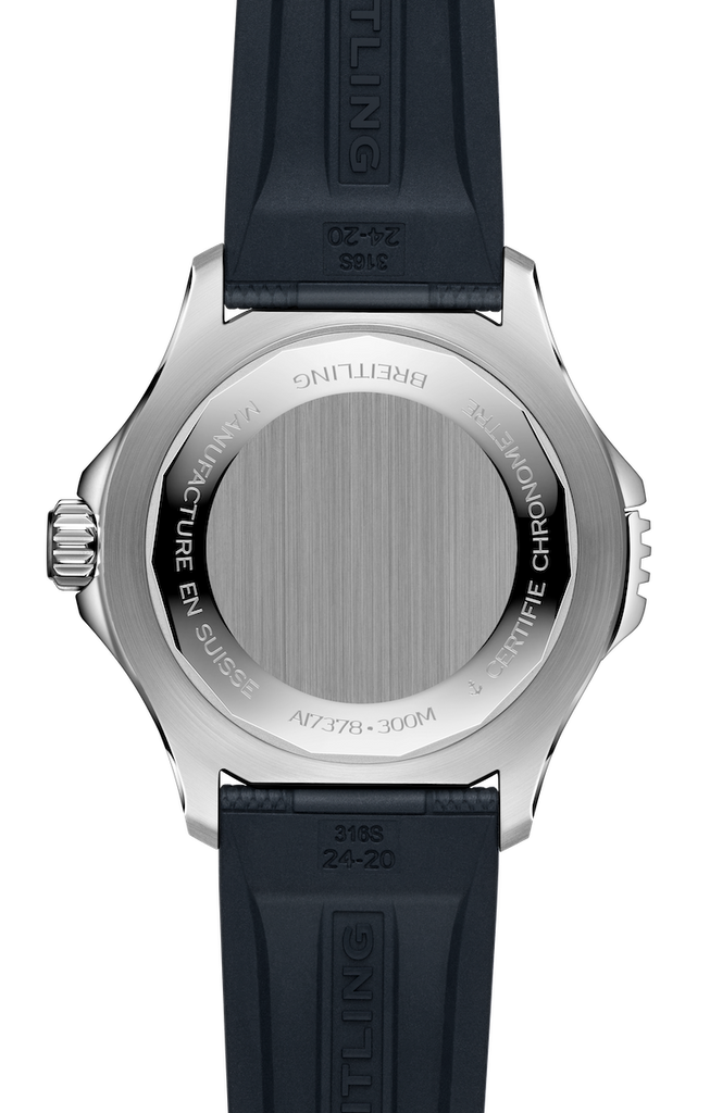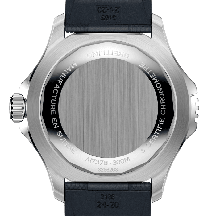 • Breitling calibre 17, COSC Certified, 28,000 vph (4Hz), 26 jewels, approximate power reserve of 38 hours.