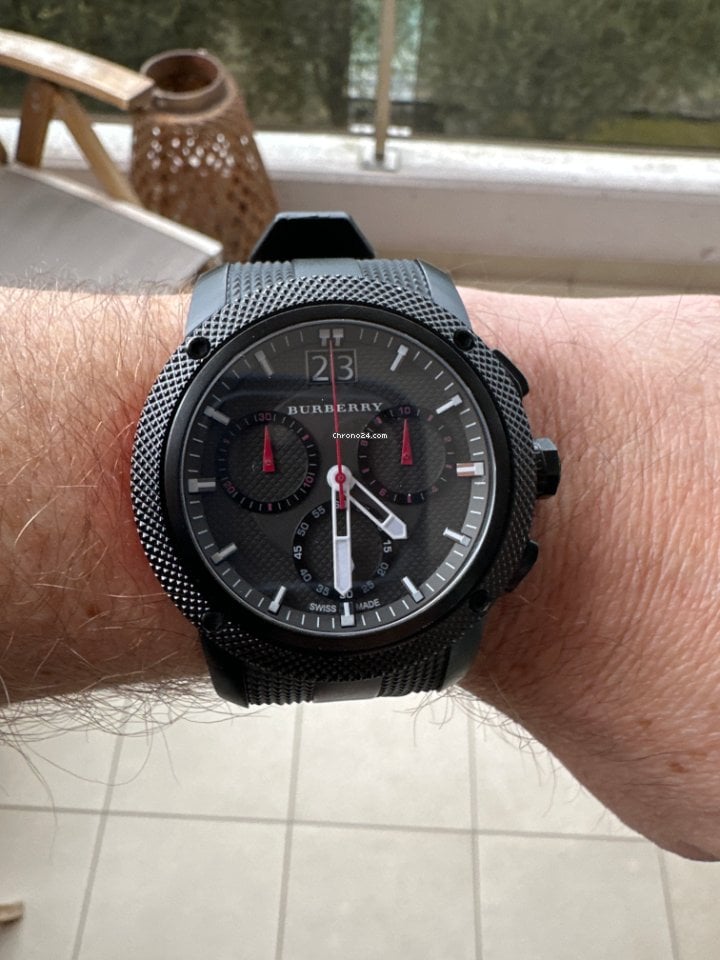 Burberry The Endurance Chronograph Black Dial Black Rubber Strap Watch For Men - BU9802