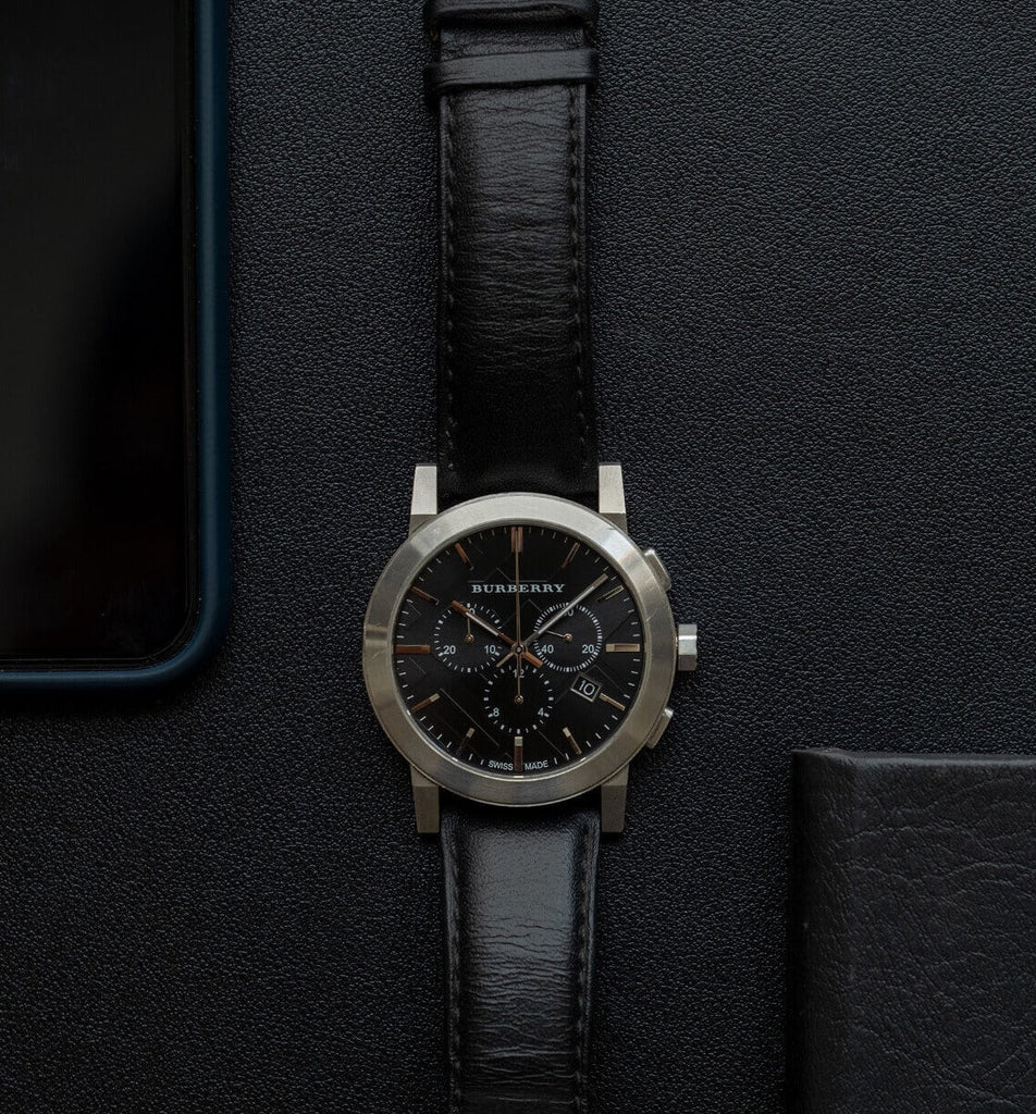 Designed for the modern man, the Burberry The City Chronograph Watch is a sleek and sophisticated timepiece. With a black dial and black leather strap, this watch exudes professionalism and style. Its chronograph feature allows for precise timekeeping, making it perfect for any busy and on-the-go individual.