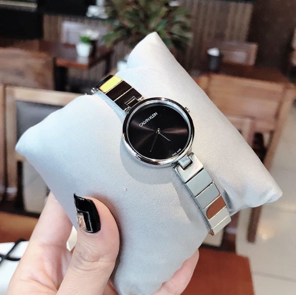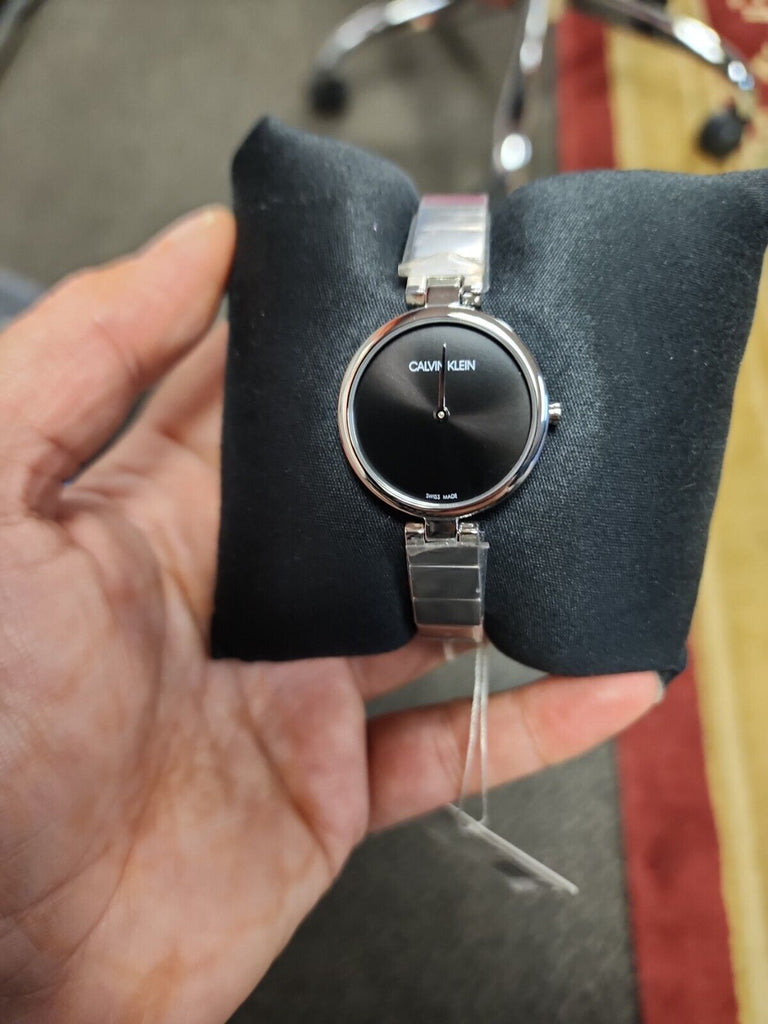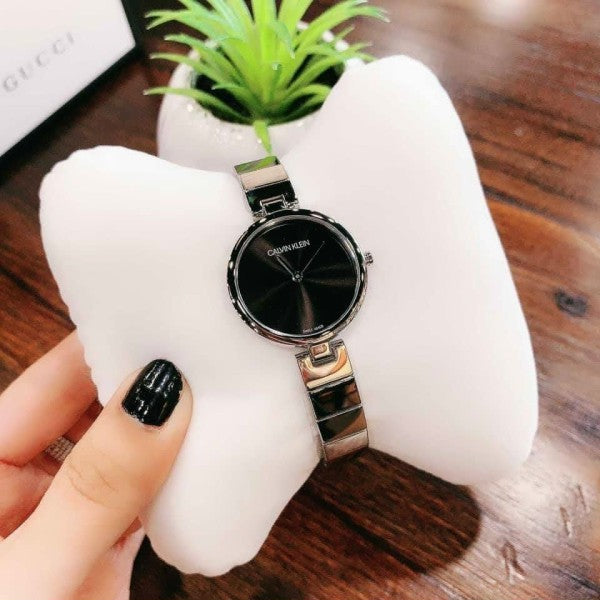 Calvin Klein Authentic Black Dial Silver Steel Strap Watch for Women - K8G23141