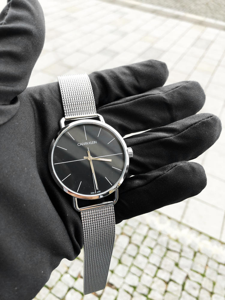 Calvin Klein Even Black Dial Silver Mesh Bracelet Watch for Women - K7B21121