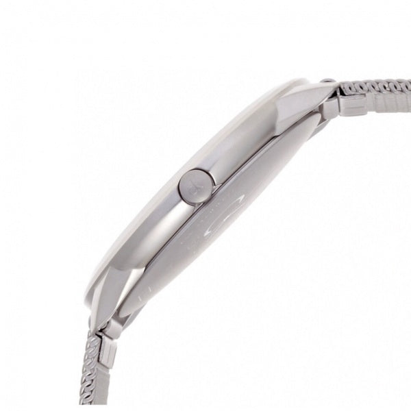| Features: | Brushed finished, Arabic Numerals silver tone markers, baton hands, matte mesh strap. |