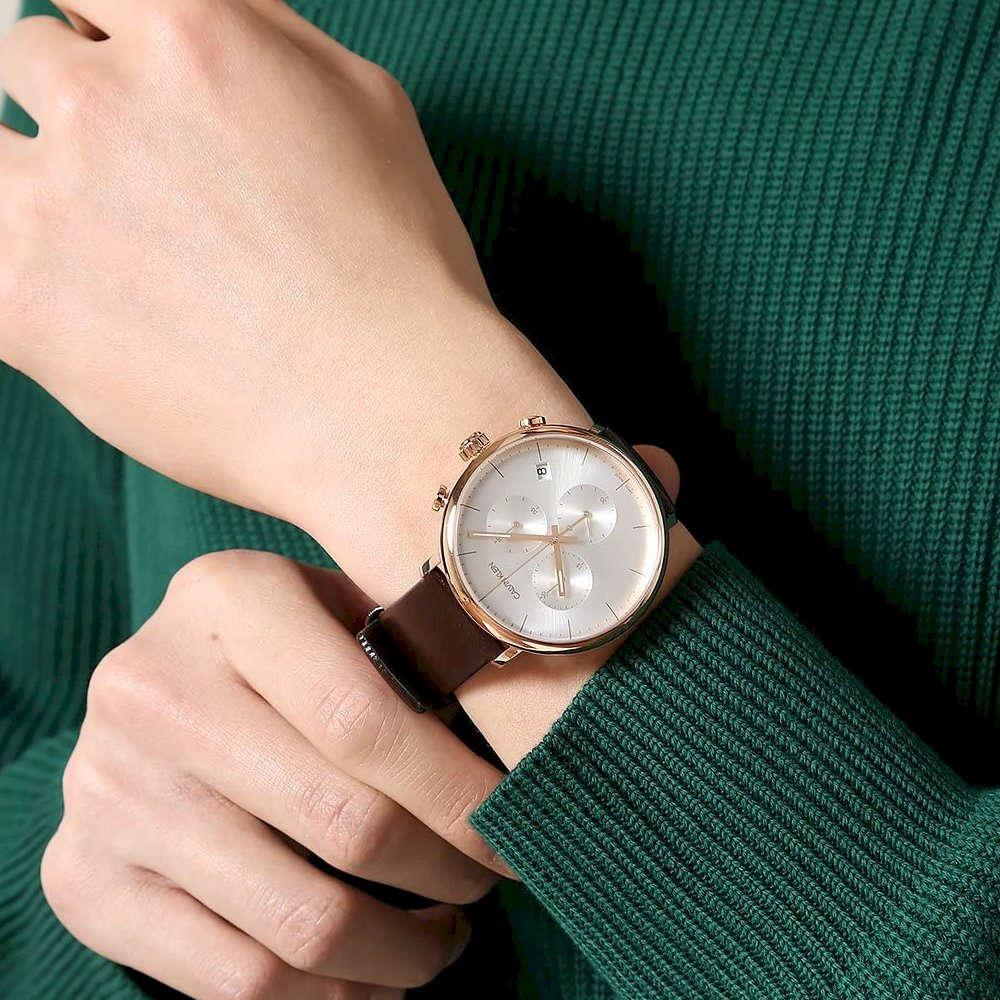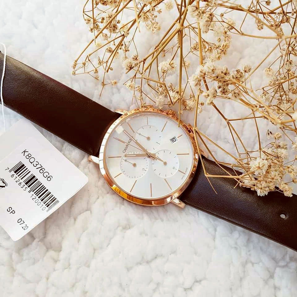 Calvin Klein Posh Chronograph White Dial Brown Leather Strap Watch for Men - K8Q376G6
