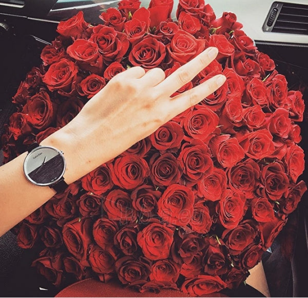 Calvin Klein Rise White Grey Dial Black Leather Strap Watch for Women - K7A231C3