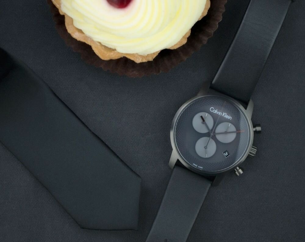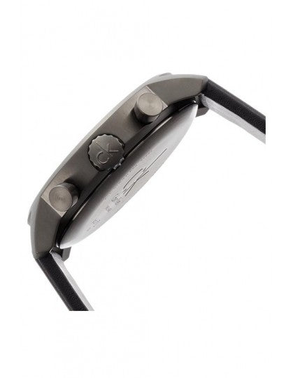 Calvin Klein City Chronograph Grey Dial Black Leather Strap Watch for Men - K2G177C3