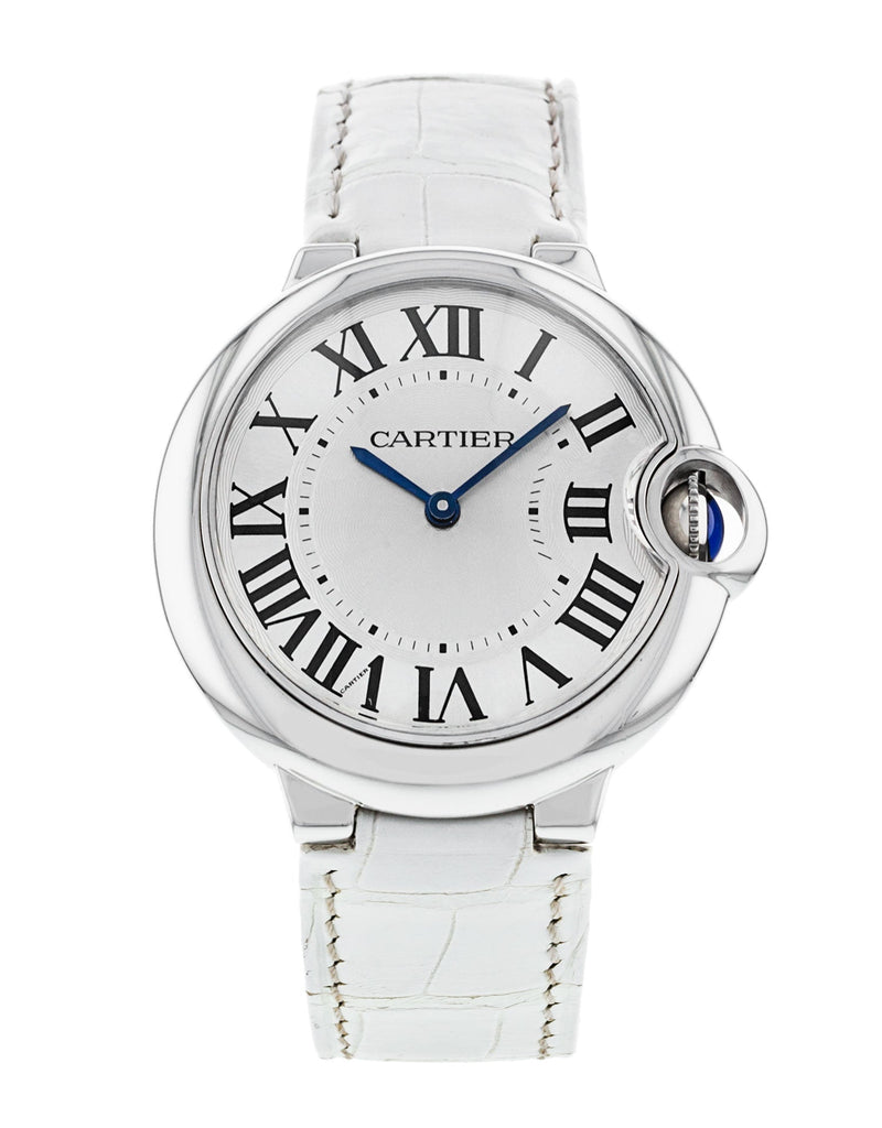 Cartier Ballon Bleu de Cartier Silver Dial White Leather Strap Watch for Women - W6920087