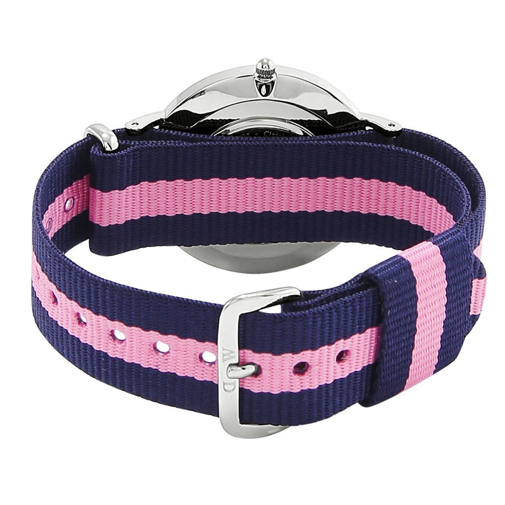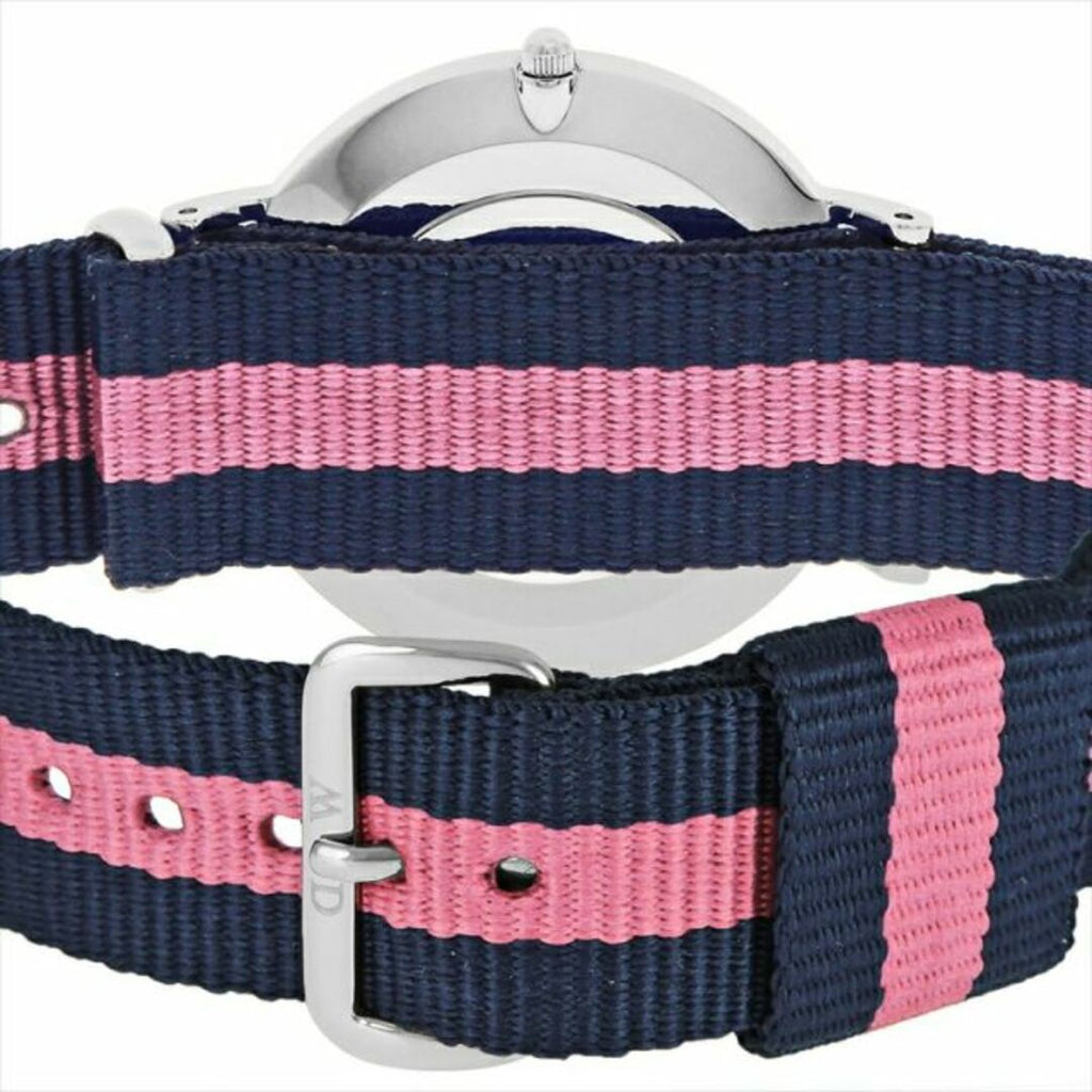 Daniel Wellington Classic Winchester 36mm Silver Watch | DW00100049/0604DW is meticulously designed with a silver watch frame, combined with a fashionable, youthful blue-pink 2-color striped fabric strap.