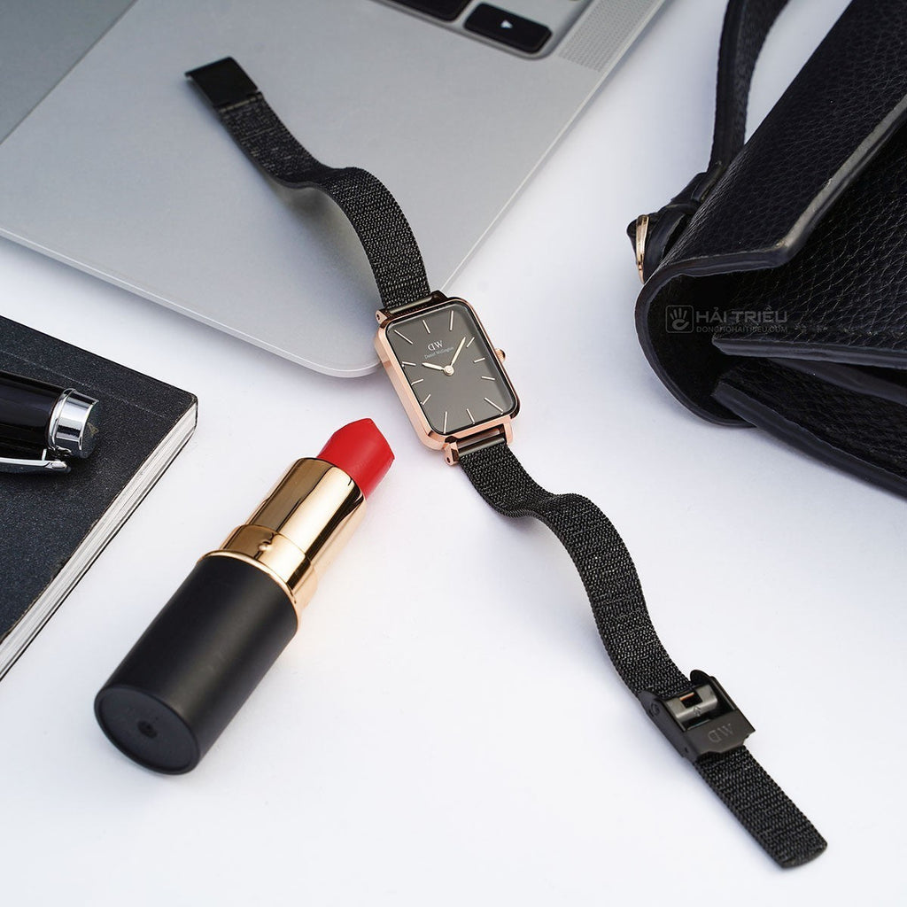 Daniel Wellington Quadro Ashfield Black Dial Black Mesh Strap Watch For Women - DW00100433