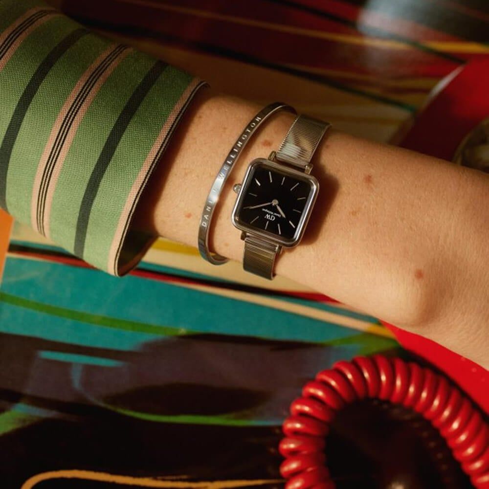 Introducing the Daniel Wellington Quadro Studio Watch for Women! With its sleek silver mesh strap and stylish black dial, this watch is designed to make a statement. Experience luxury and elegance with every wear. Elevate your style with the DW00100522.
