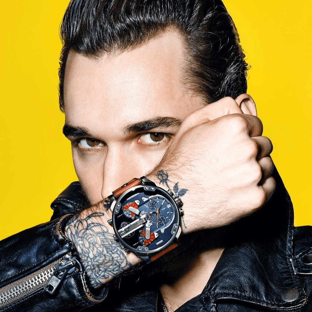Upgrade your style game with the Diesel Mr Daddy 2.0 Chronograph Watch for men. Featuring a sleek black dial and a brown leather strap, this watch exudes sophistication and luxury. With its chronograph feature, stay punctual and stylish all day long. Elevate your wrist game with this must-have timepiece.