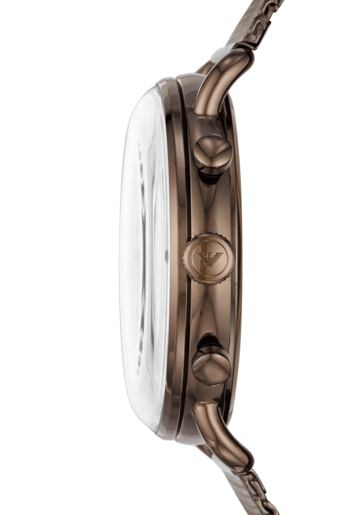 Emporio Armani Aviator Chronograph Grey Dial Brown Mesh Bracelet Watch For Men - AR11169