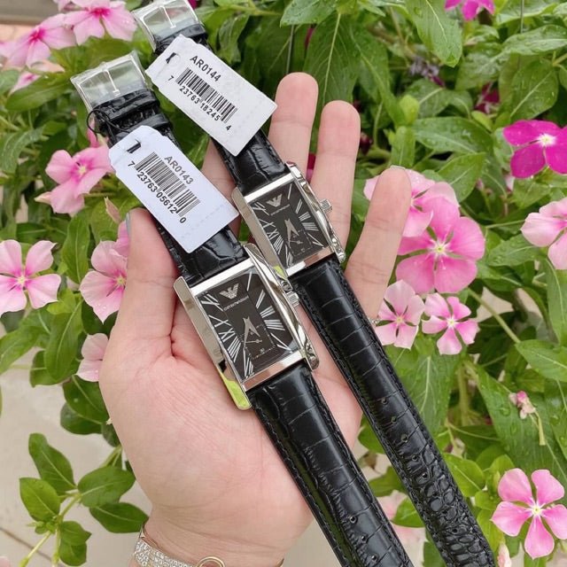 Emporio Armani Classic Black Dial Black Leather Strap Watch For Women - AR0144
