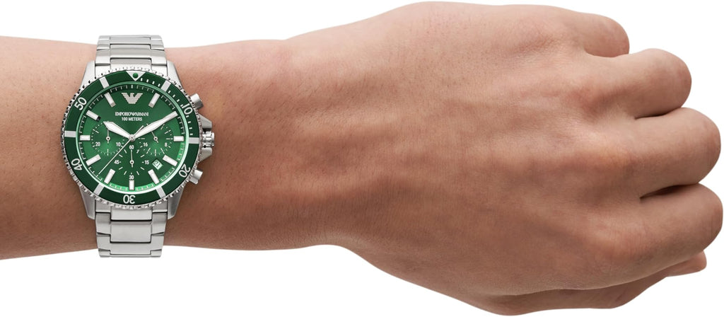 Emporio Armani Diver Chronograph Green Dial Silver Steel Strap Watch For Men - AR11500