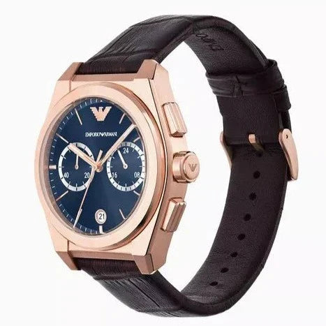 Emporio Armani Federico Chronograph Blue Dial Brown Leather Strap Watch For Men - AR11563