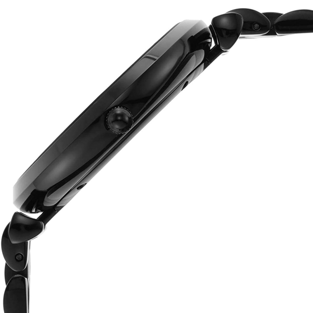 Emporio Armani's 34mm watch features a black sunray dial with Roman numeral and stick indexes, three-hand movement and black Steel bracelet.
