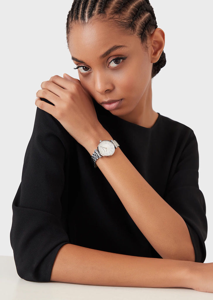Emporio Armani Gianni T-Bar Quartz Silver Dial Silver Steel Strap Watch For Women - AR11445