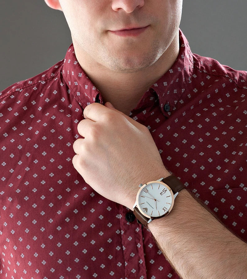 Emporio Armani Giovanni Quartz White Dial Brown Leather Strap Watch For Men - AR11211