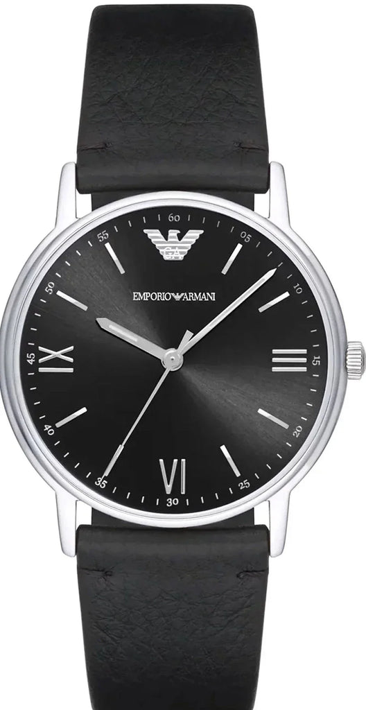 Emporio Armani Kappa Analog Quartz Black Dial Black Leather Strap Watch For Men - AR11013