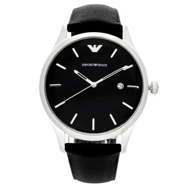 Emporio Armani Lambda Classic Quartz Black Dial Black Leather Strap Watch For Men - AR11020