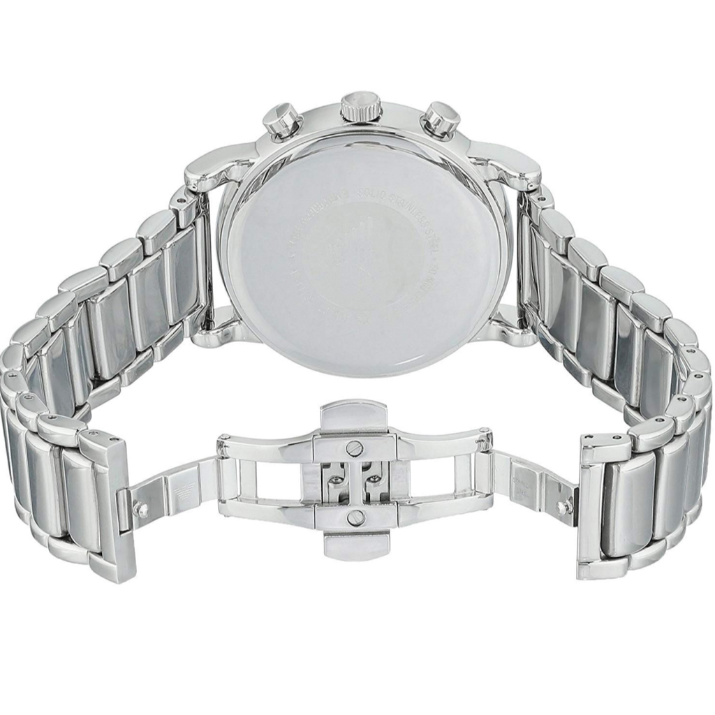 Emporio Armani AR11132 is a 43mm men's watch with a silver-tone case, blue dial and stainless steel bracelet. It comes with its original box and 2 year warranty. It's water resistance of of 50m is an added advantage.