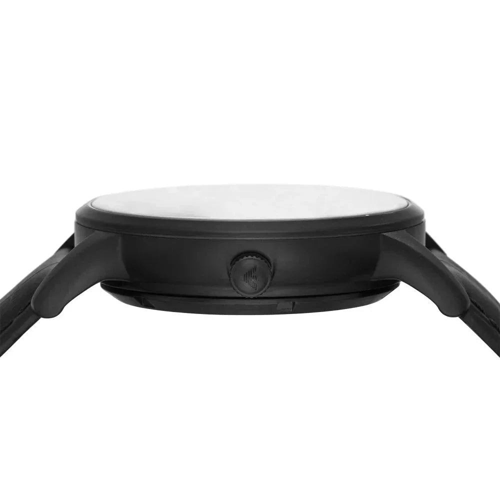 Emporio Armani Meccanico Automatic Black Dial Black Leather Strap Watch For Men - AR60042
