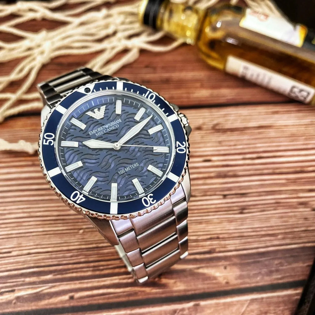 Emporio Armani Meccanico Automatic Blue Dial Silver Steel Strap Watch For Men - AR60059