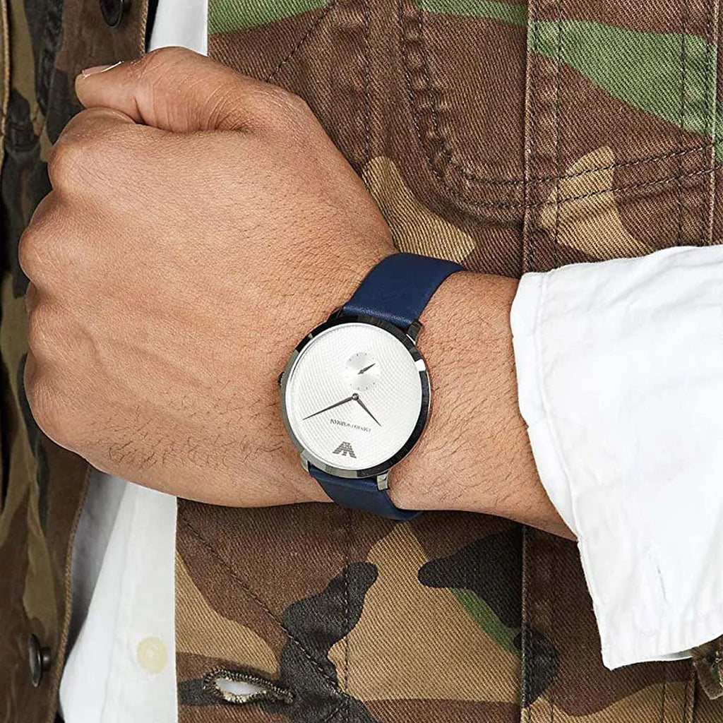 Emporio Armani Modern Slim Analog Silver Dial Blue Leather Strap Watch For Men - AR11214