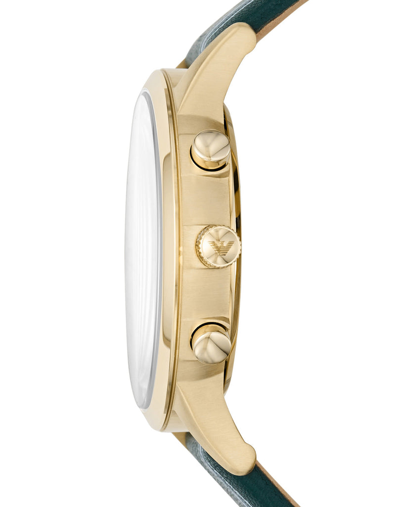 Emporio Armani Renato Chronograph Silver Dial Green Leather Strap Watch For Men - AR11233