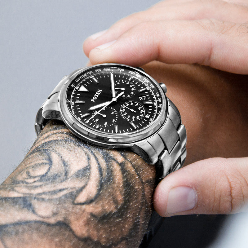 Fossil Goodwin Chronograph Black Dial Silver Steel Strap Watch for Men - FS5412