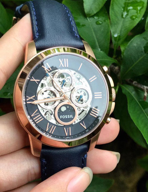 Fossil Grant Automatic Blue Dial Blue Leather Strap Watch for Men - ME3029